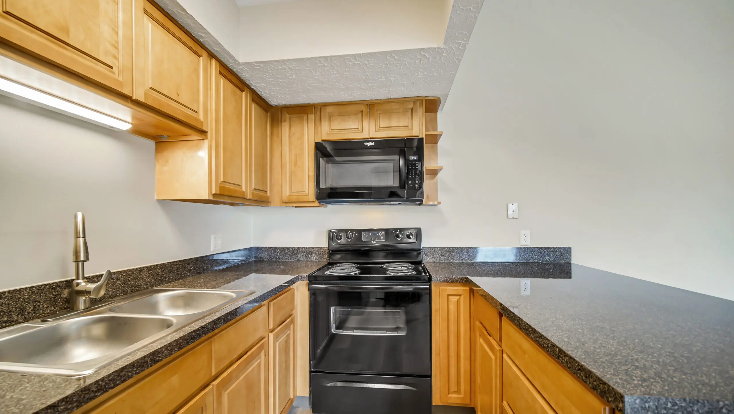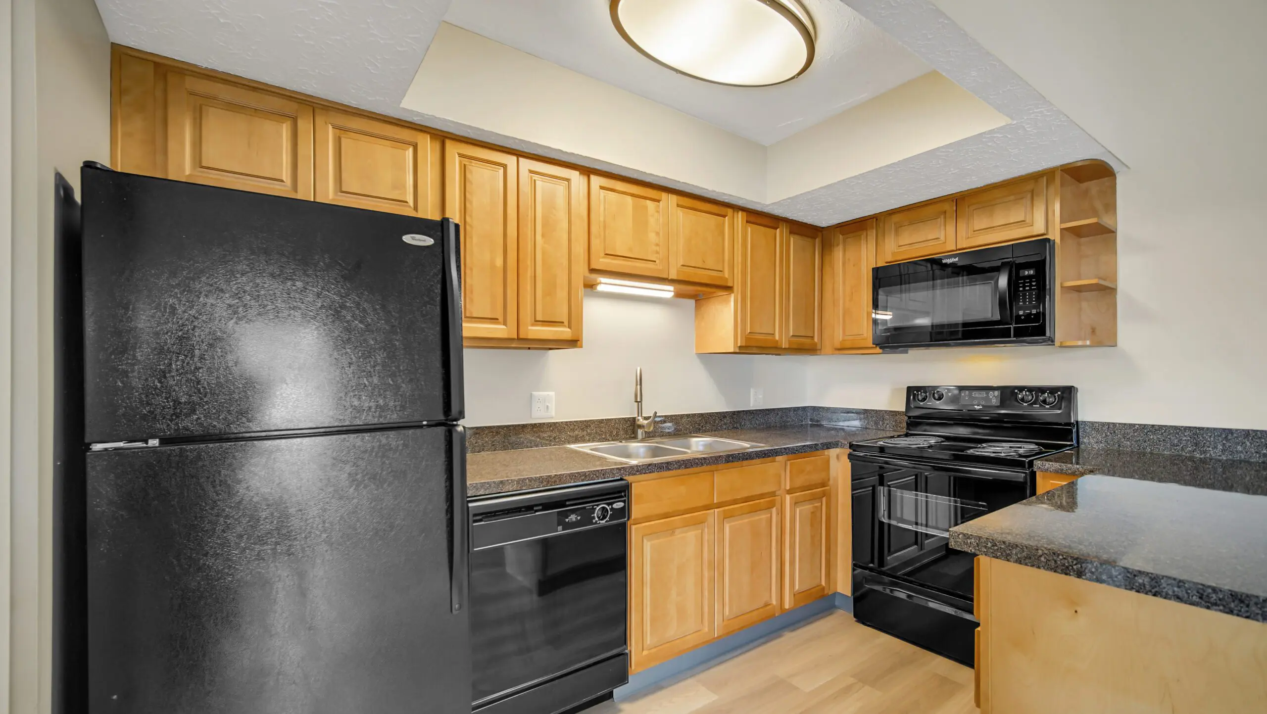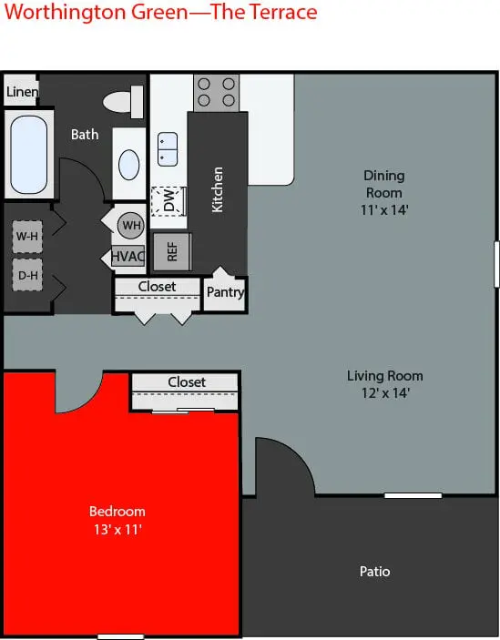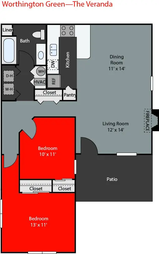 Our unique 1 and 2 bedroom ranch-style apartment homes feature upgraded kitchens with brushed nickel fixtures, granite-inspired countertops, black Whirlpool appliances, and breakfast bars. All apartment homes are complete with cathedral ceilings, large private patios, and oversized windows. Our 24-hour state-of-the-art athletic club, swimming pool with sundeck, and car care area are just some of the amenities you’ll enjoy. And don’t forget, here at Worthington Green Apartments your pets are welcome!