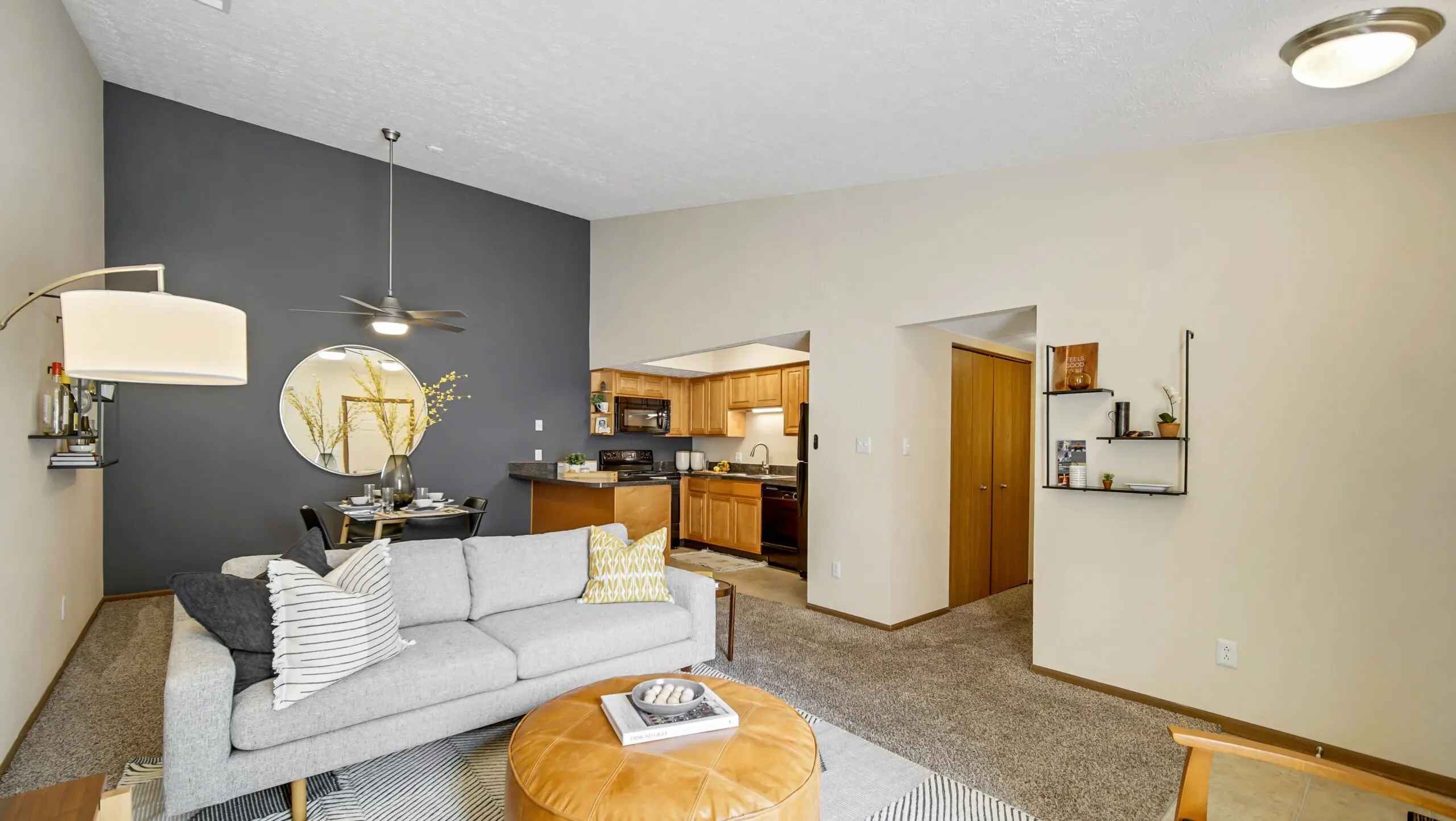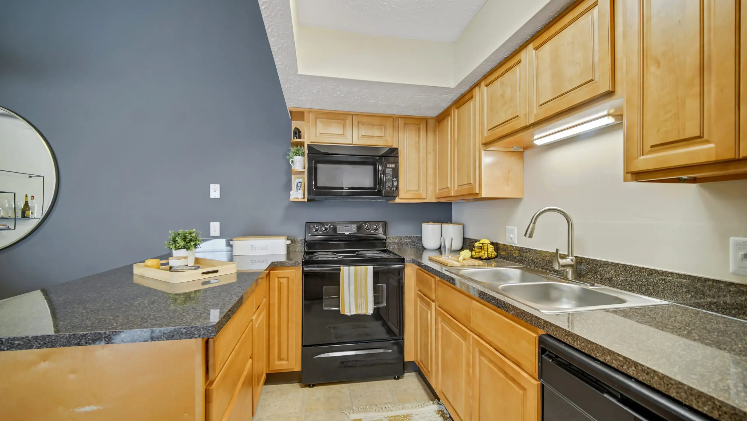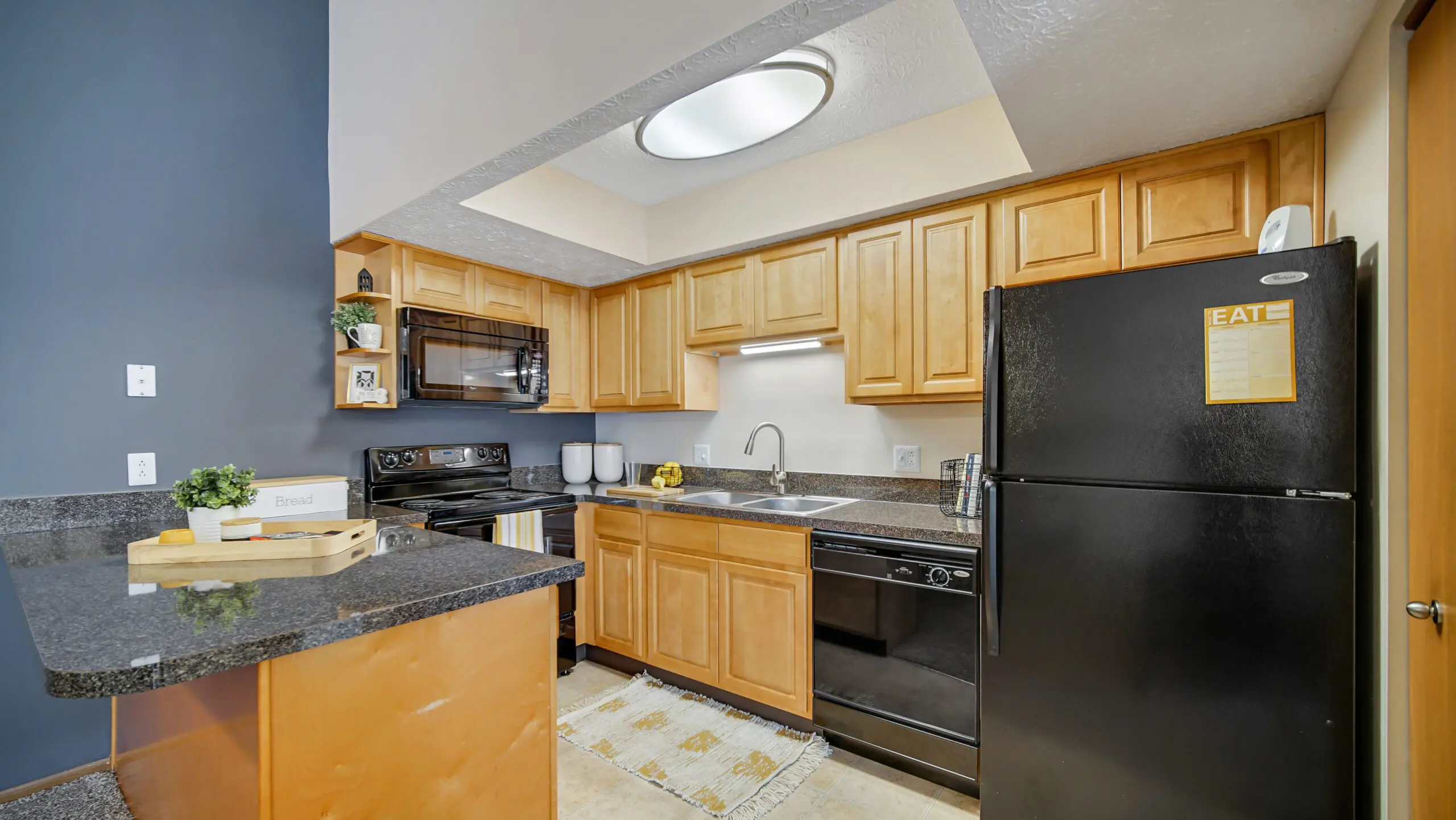 Our unique 1 and 2 bedroom ranch-style apartment homes feature upgraded kitchens with brushed nickel fixtures, granite-inspired countertops, black Whirlpool appliances, and breakfast bars. All apartment homes are complete with cathedral ceilings, large private patios, and oversized windows. Our 24-hour state-of-the-art athletic club, swimming pool with sundeck, and car care area are just some of the amenities you’ll enjoy. And don’t forget, here at Worthington Green Apartments your pets are welcome!